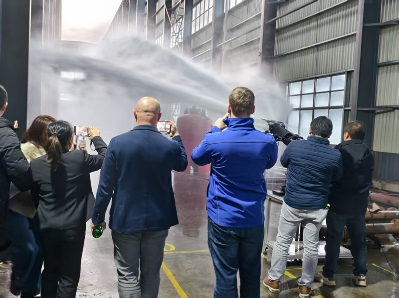 أثناء زيارته للموقع، أجرى العميل مناقشات متعمقة مع فريقنا الفني وقام شخصيًا باختبار فوهات الحريق ومنتجات مراقبة الحرائق الخاصة بنا. وأعربوا عن ثناءهم الكبير على أداء وجودة منتجاتنا وأشاروا على الفور إلى نية واضحة للتعاون.